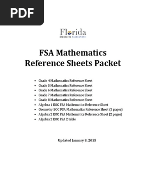 Geometry Eoc Fsa Reference Sheet Updated 09 24 2015 Fsa Mathematics Reference Sheet Packet Geometry Eoc Fsa Mathematics Reference Sheet Customary Course Hero