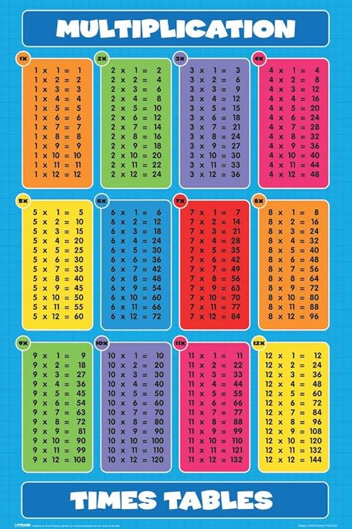 Amazon Com Pyramid America Multiplication Times Tables Mathematics Math Chart Educational Reference Teaching Laminated Dry Erase Sign Poster 12x18 Home Kitchen